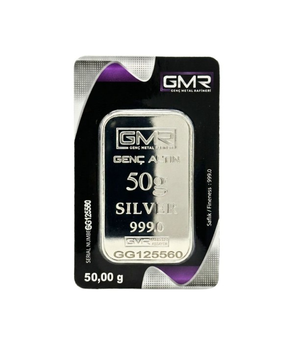 50 Gr. Ağırlığında 999 saflığında Gümüş Külçe.